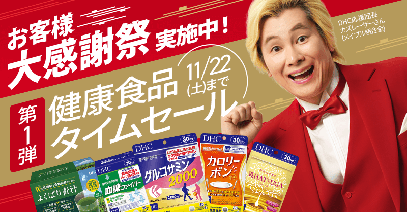 日頃のご愛顧に感謝を込めて、一度に5,000円(税込)以上ご購入※でDHC商品が全品※10%OFF!化粧品、健康食品はもちろん!アパレル、雑貨、医薬品、医薬部外品、ペット用商品も全品対象です!ご愛用の商品も、試してみたかった商品も、今が断然お得です。