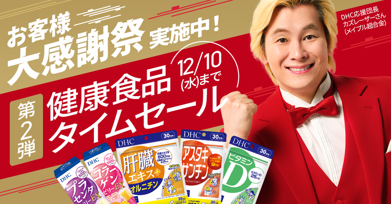 日頃のご愛顧に感謝を込めて、一度に5,000円(税込)以上ご購入※でDHC商品が全品※10%OFF!化粧品、健康食品はもちろん!アパレル、雑貨、医薬品、医薬部外品、ペット用商品も全品対象です!ご愛用の商品も、試してみたかった商品も、今が断然お得です。