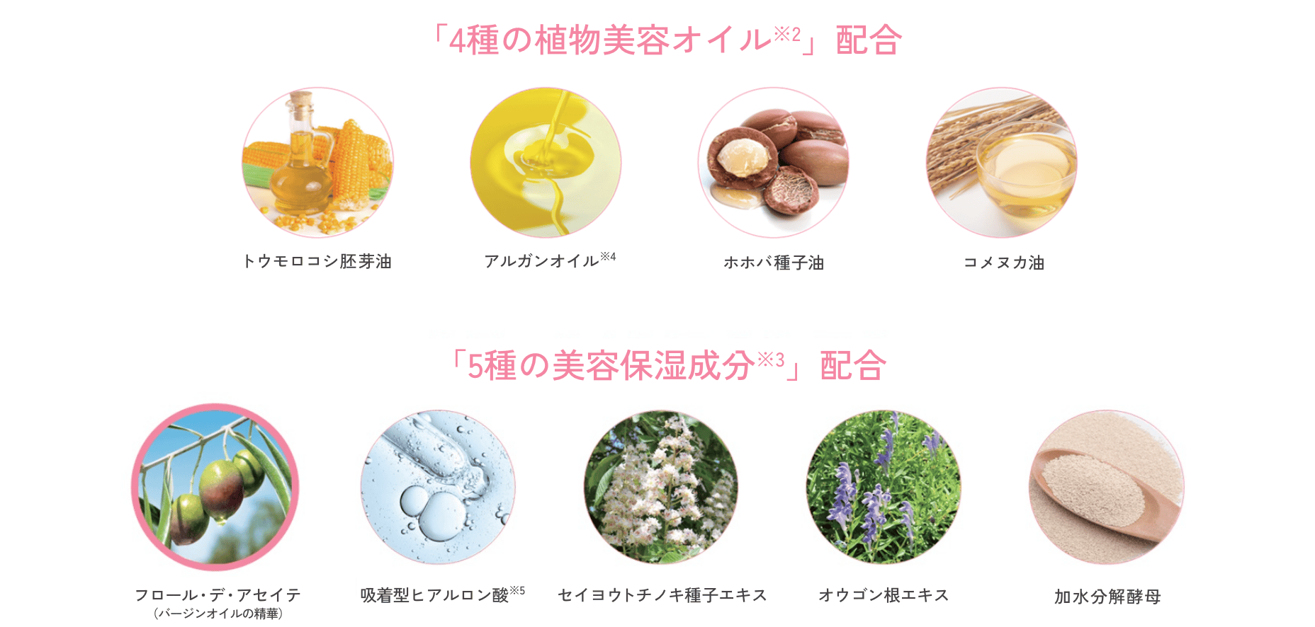 ※2トウモロコシ胚芽油、アルガニアスピノサ核油、ホホバ種子油、コメヌカ油/洗浄成分